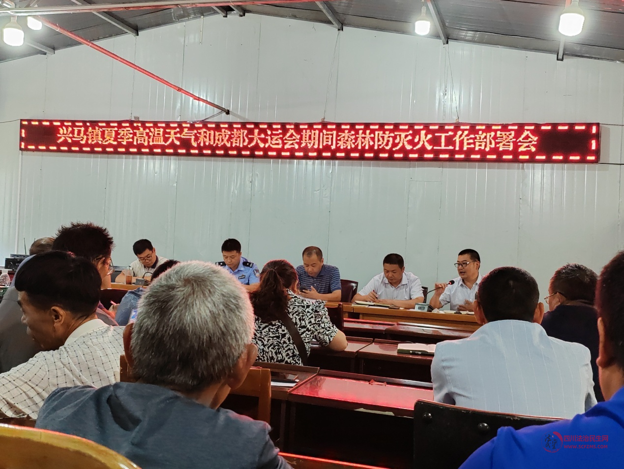 四川巴中讯 (熊贵民.袁文荣) 7月19日,南江县兴马镇召开夏季高温时期暨成都大运会期间森林防灭火工作专题会,镇党委副书记、镇长艾慬围绕进一步推动森林防火工作进行部署,并要求全体干部职工执行24小时值班和领导带班制度,做到值班期间不脱岗、不漏岗,确保信息畅通,充分做好应对突发火情的应急准备工作,一旦发生火情,确保能迅速、安全、有效组织扑救。各村(社区)支部书记、村主任、村文书、、村民小组长、镇级各单位、各村护林员、网格员、森林防灭火指挥成员单位共计120余人参加会议。